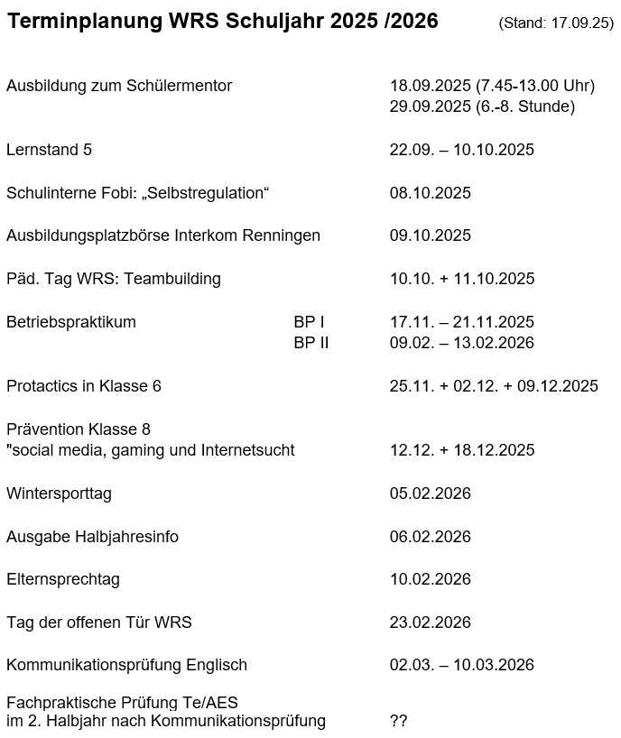 Unterrichtszeiten an der Theodor-Heuss-Schule